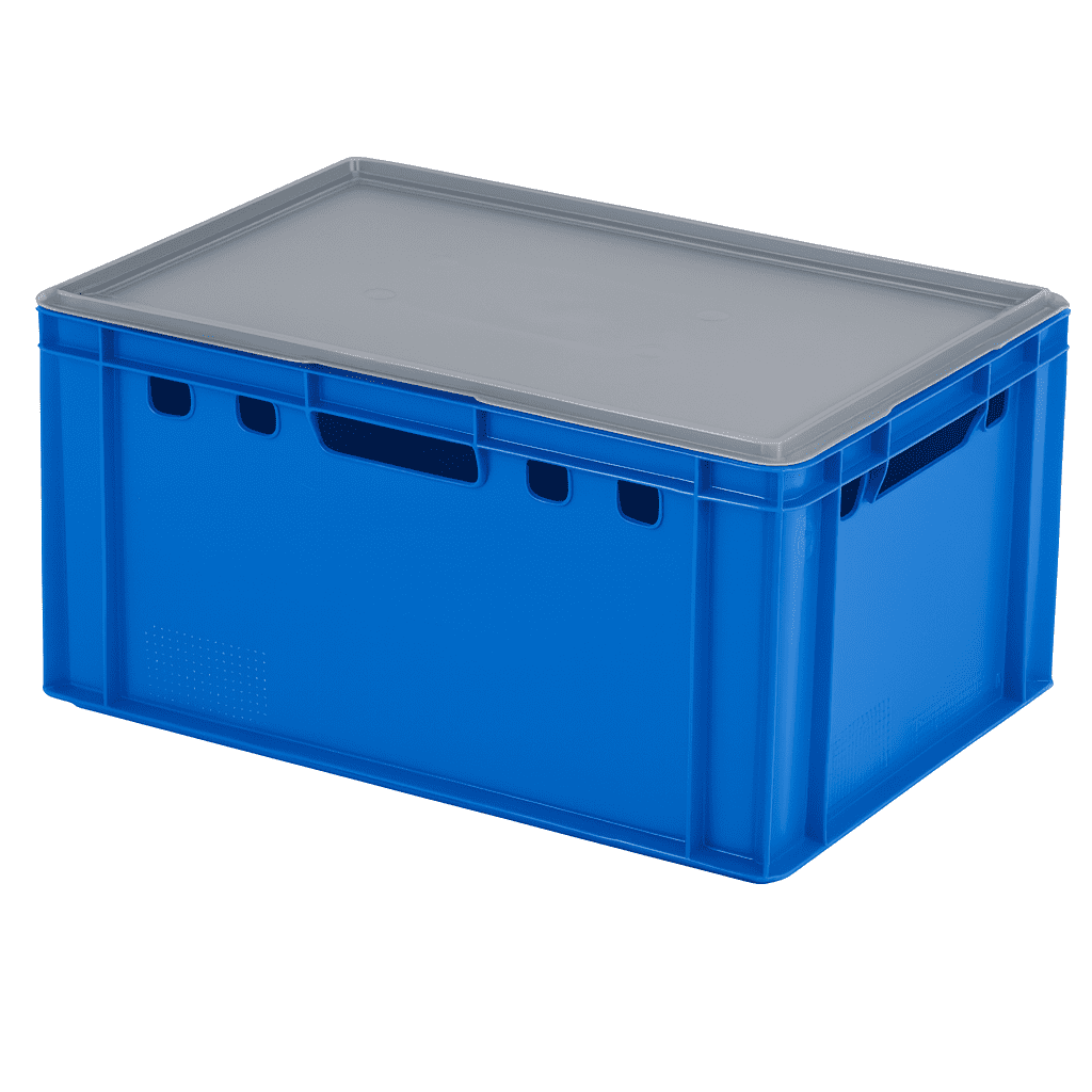 E3‑Kasten 600 × 400 × 300 mm (Blau)  Mit grauem Deckel – Ordnung & Sicherheit